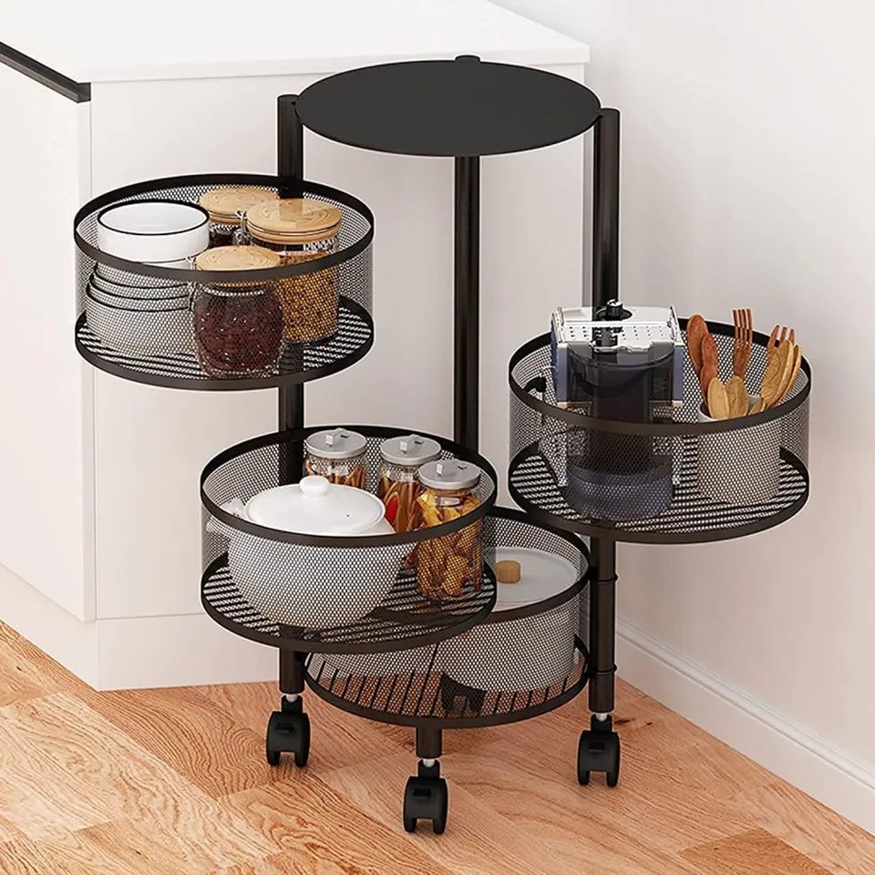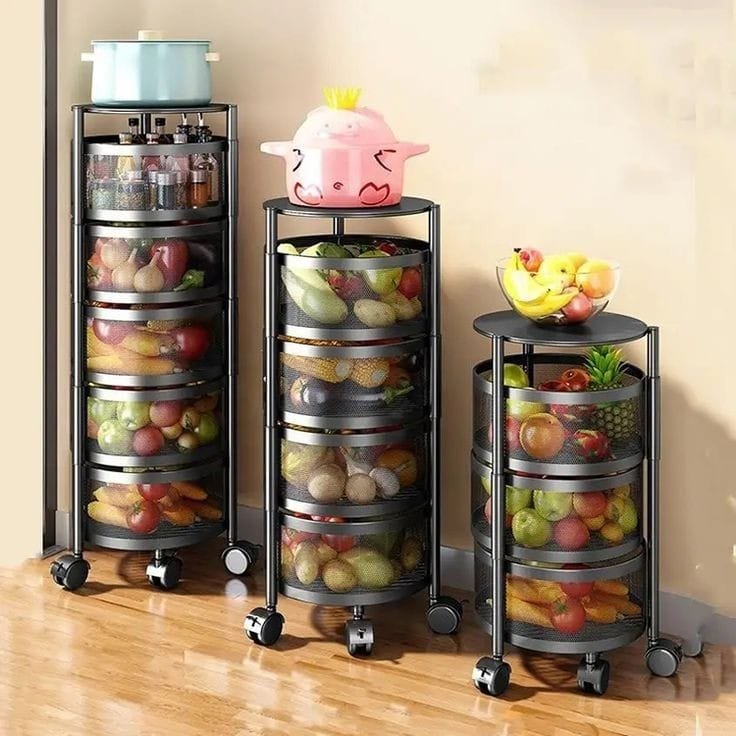 Upgrade your space with this high-quality 4-Tier Rotating Storage Rack – designed to combine functionality, modern design, and easy mobility in one smart organizer. Whether you’re storing fruits and vegetables in the kitchen, cosmetics in your bathroom, or accessories in your bedroom, this versatile rack is your go-to solution.