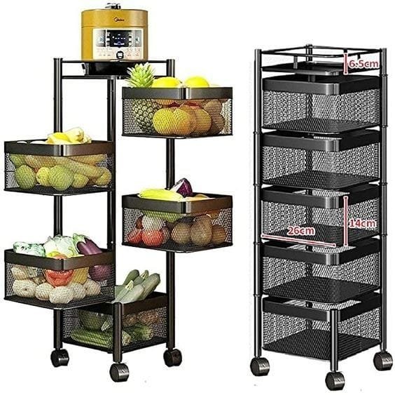 Be the first to review “Storage Rack for Kitchen, Rotating Kitchen Storage Rack No Assembly, 3 to 5-Tier Metal Storage Tower Basket Shelves Organizer on Rolling Wheels with Removal Drawers for Fruit Vegetable Grocery Corns Potato Onion, black storage rack, movable storage rack.”